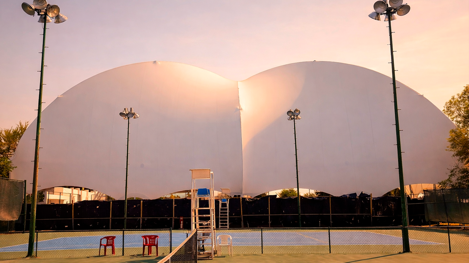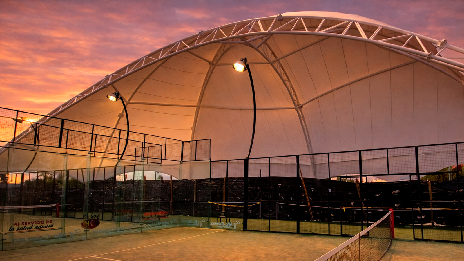 Estructura diseñada para mejorar experiencia de juego y confort climático en club deportivo.